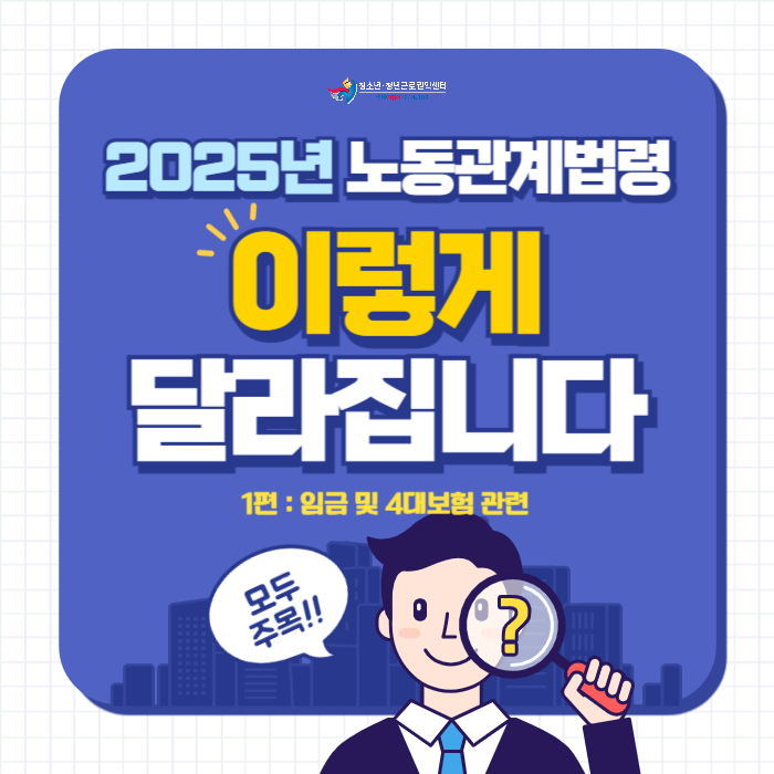 [센터홍보] 2025년 노동관계법령 이렇게 달라집니다 <1편> 임금 및 4대 보험 관련