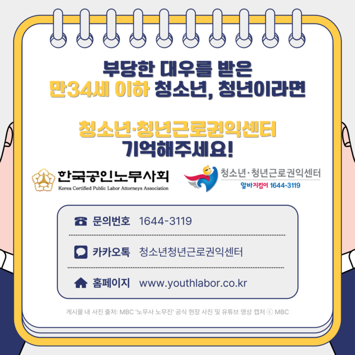 저희 청소년·청년근로권익센터를 찾아주세요.