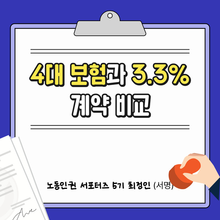 [노동인권 서포터즈 5기][카드뉴스] 4대 보험과 3.3% 계약 비교