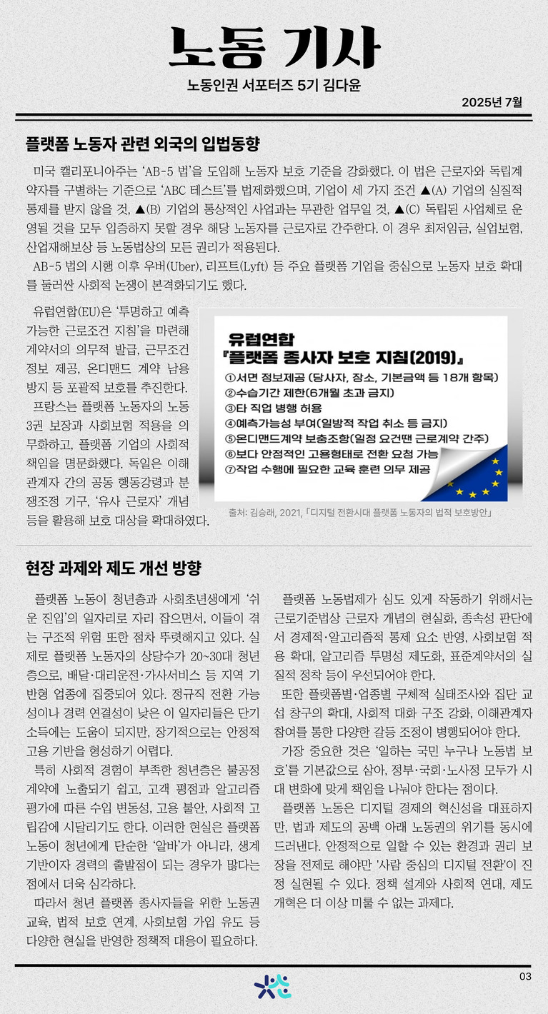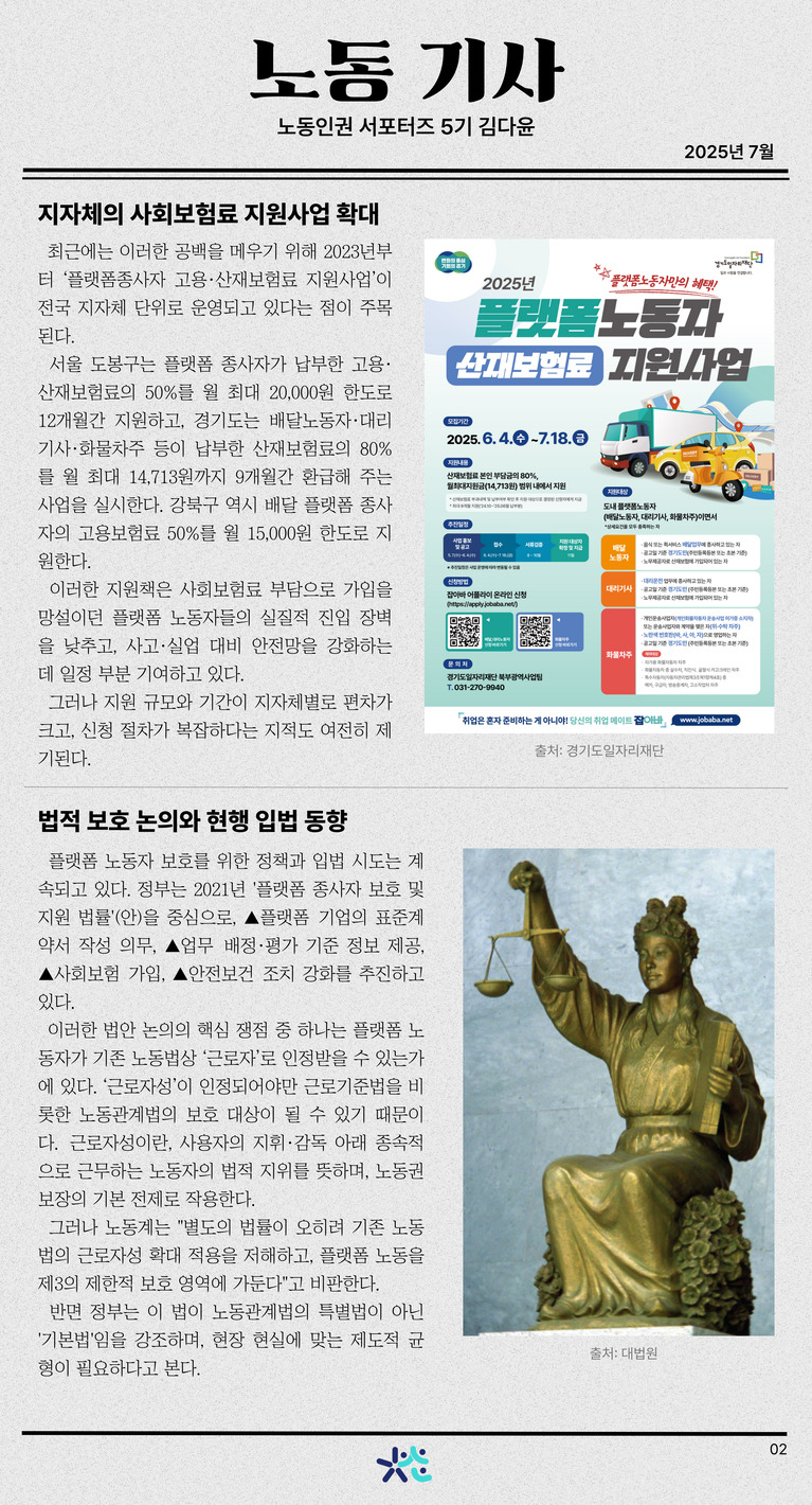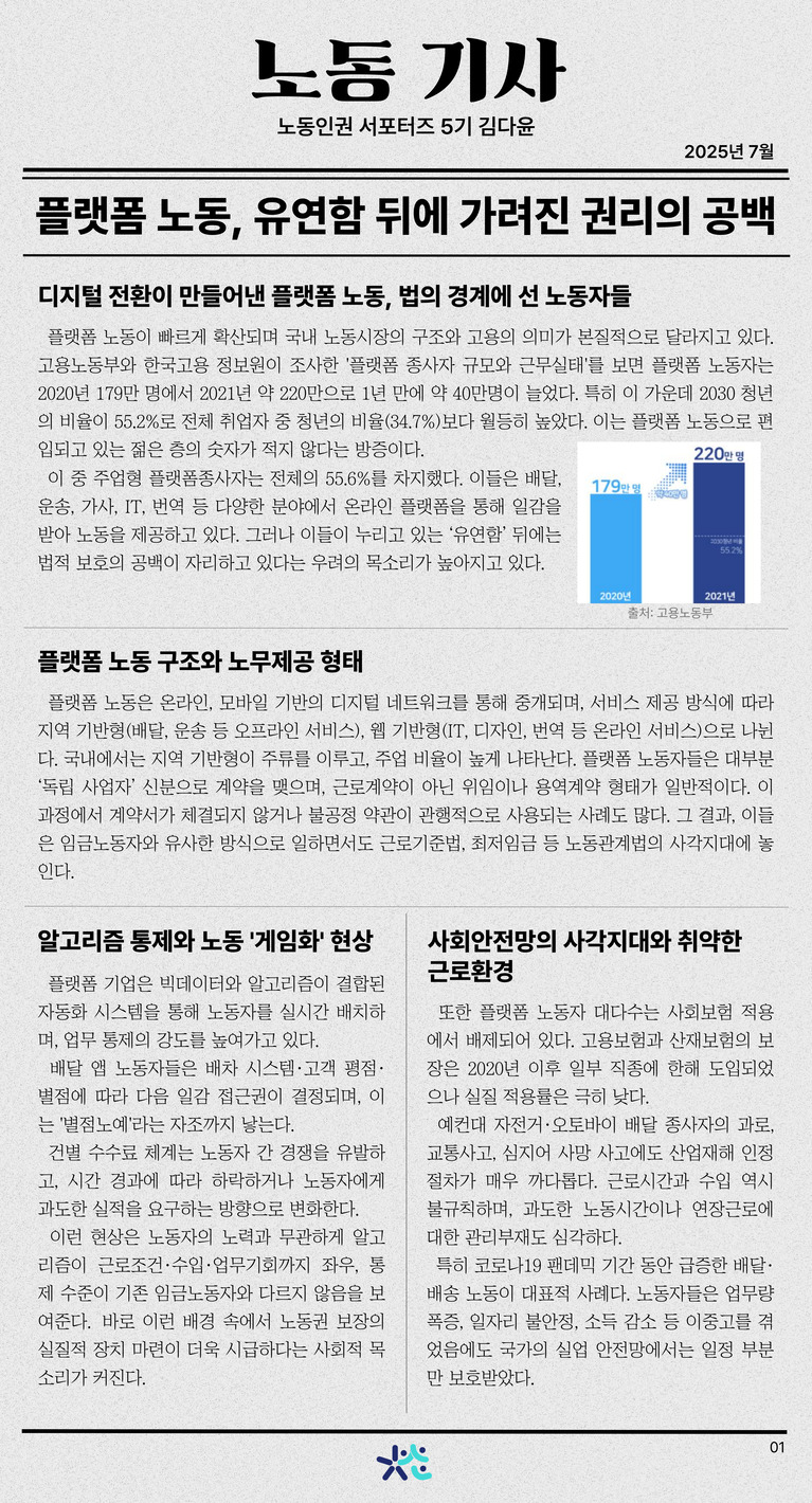 안녕하세요, 노동인권 서포터즈 5기 김다윤입니다.