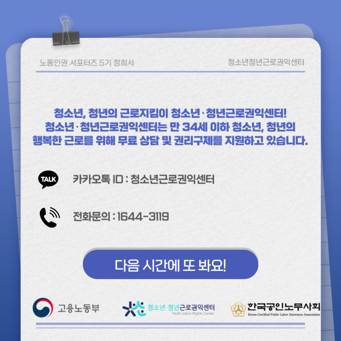 안녕하세요, 노동인권 서포터즈 5기 정희서입니다.