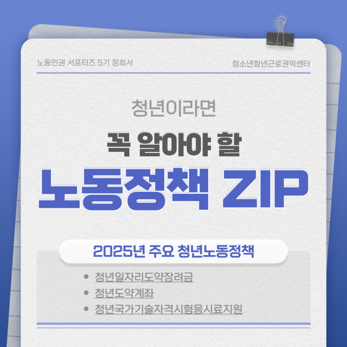 [노동인권 서포터즈 5기][카드뉴스] 청년이라면 꼭 알아야 할 노동정책 ZIP