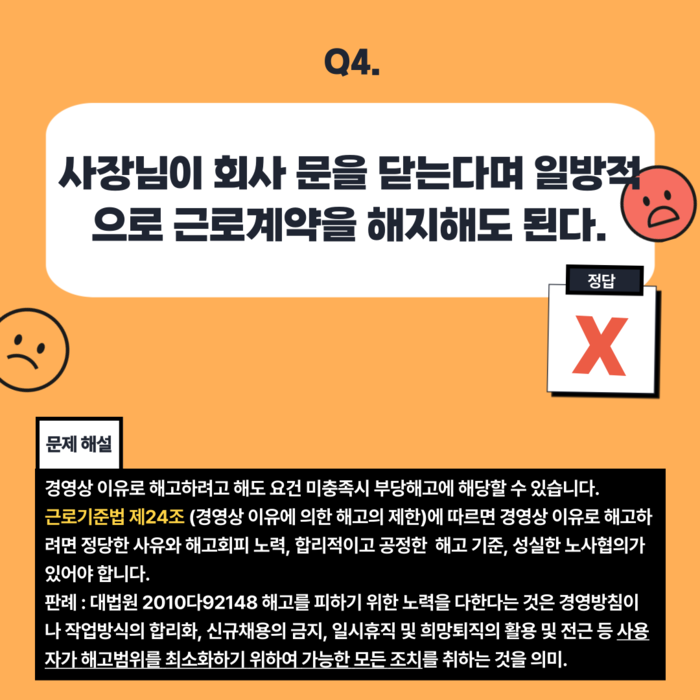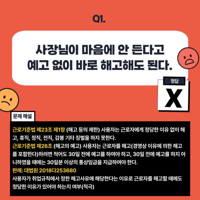 [노동인권 서포터즈 5기][카드뉴스] 이것도 부당해고인가요? 부당해고 OX퀴즈