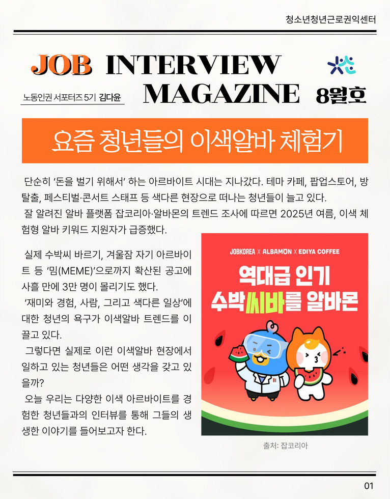[노동인권 서포터즈 5기][기획기사] 요즘 청년들의 이색알바 체험기