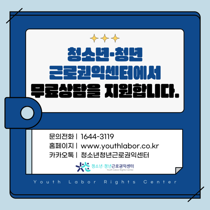 자세한 상담이 필요하다면 청소년청년근로권익센터로 문의 주세요!