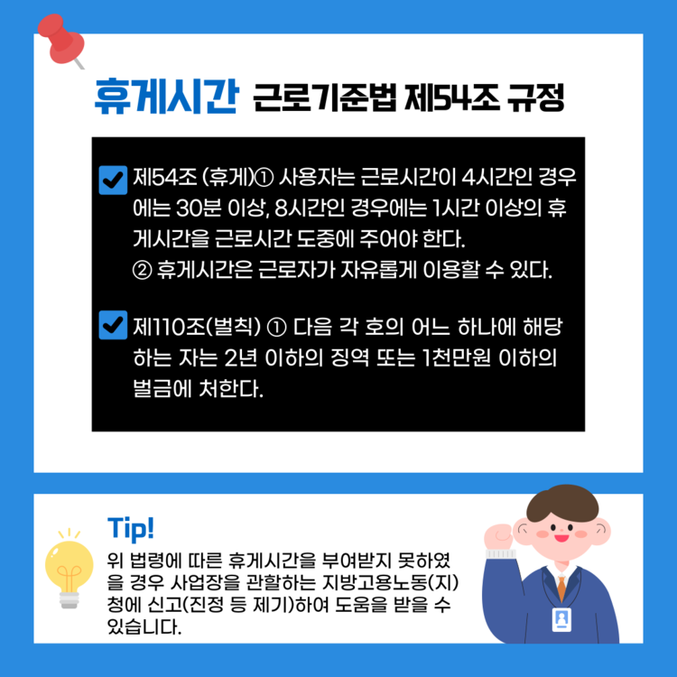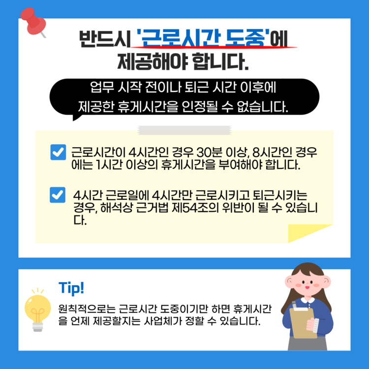 업무 도중 반드시 가져야하는 휴게시간,