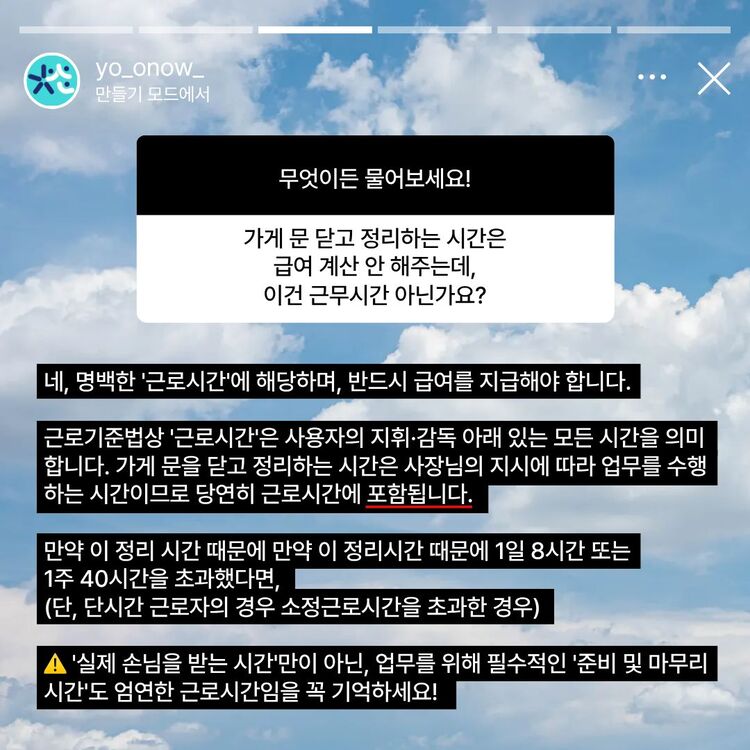 가게 문 닫고 정리하는 시간은 급여 계산을 안해줘요!