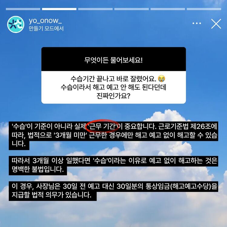 수습기간엔 해고 예고 안하고 해고해도 괜찮나요?
